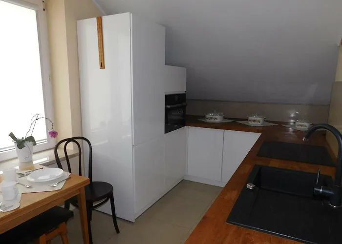 This apartment features a fully furnished kitchen, equipped with a microwave, a fridge, and kitchenware. The property also provides guests with coffee and tea making facilities. Offering European dishes, Restauracja Mauers is about 5 minutes away by car. Wojska Polskiego bus stop can be found just a few steps from the 1-room Pokoje Goscinne Barka.